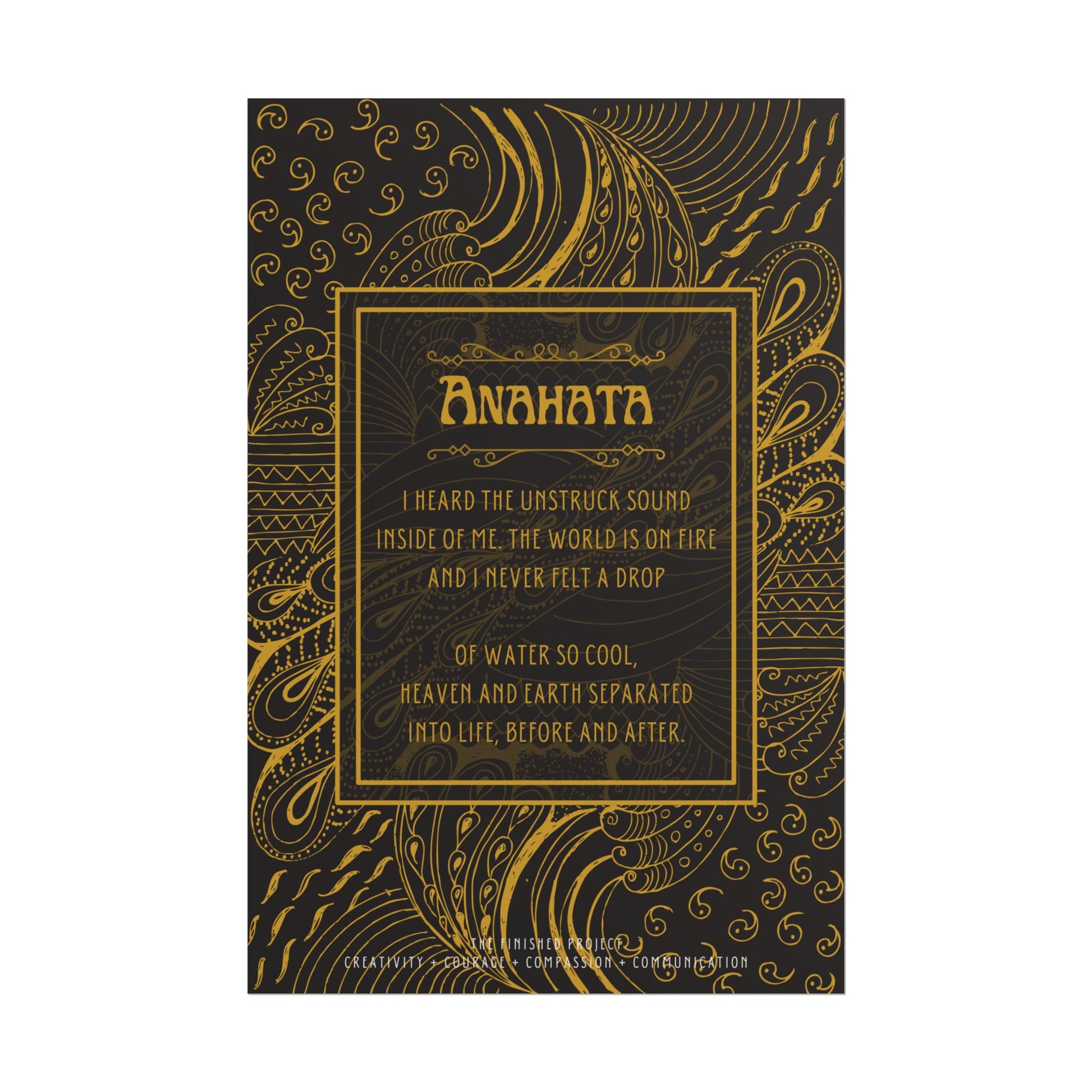 Open your heart center with the "Anahata" poetry + art poster from The Finished Project. This unframed poetry print is made with museum-grade, heavyweight art paper, and comes in two sizes to fit your living space.