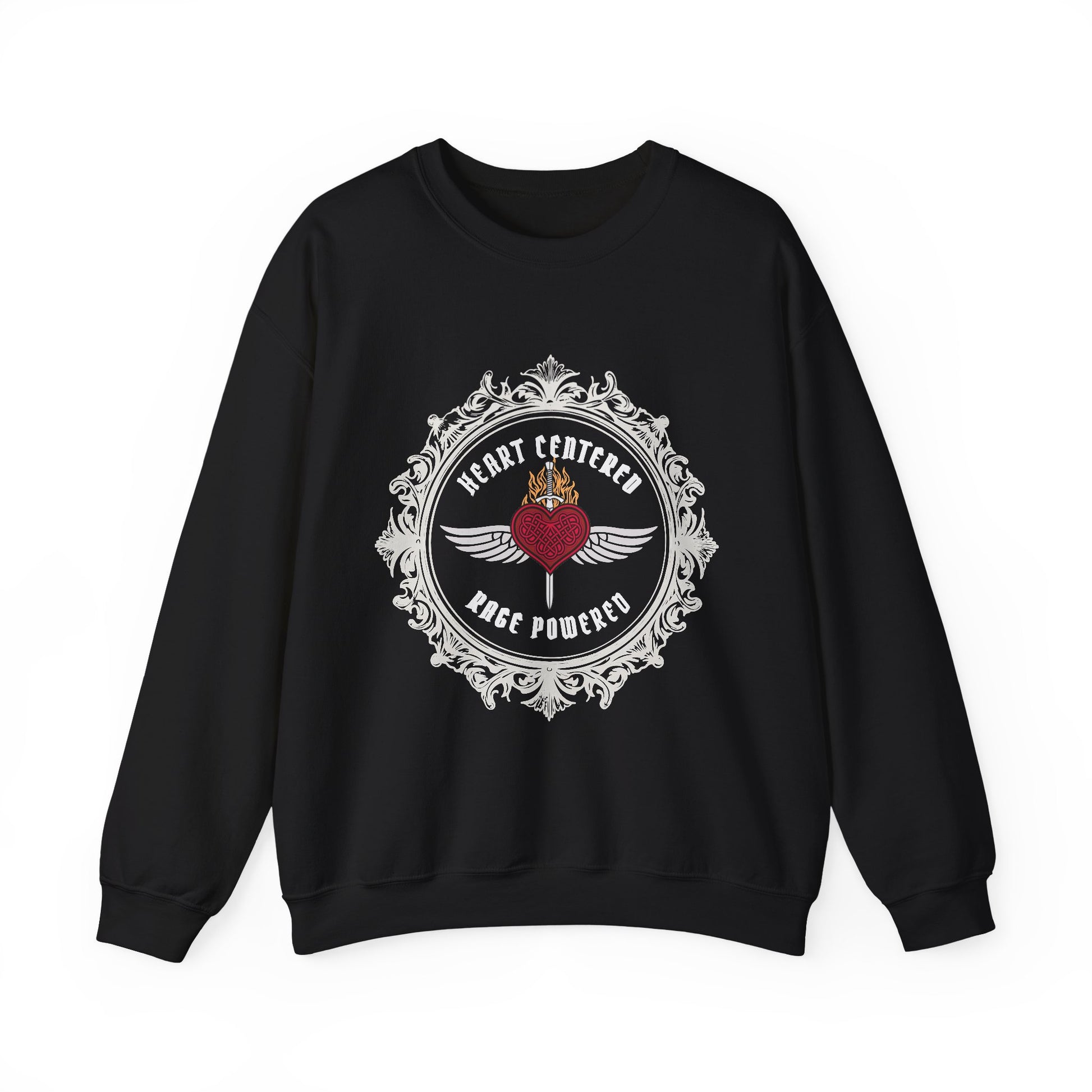 Stay grounded in the "Heart Centered Rage Powered" poetry + art crewneck sweatshirt from The Finished Project.