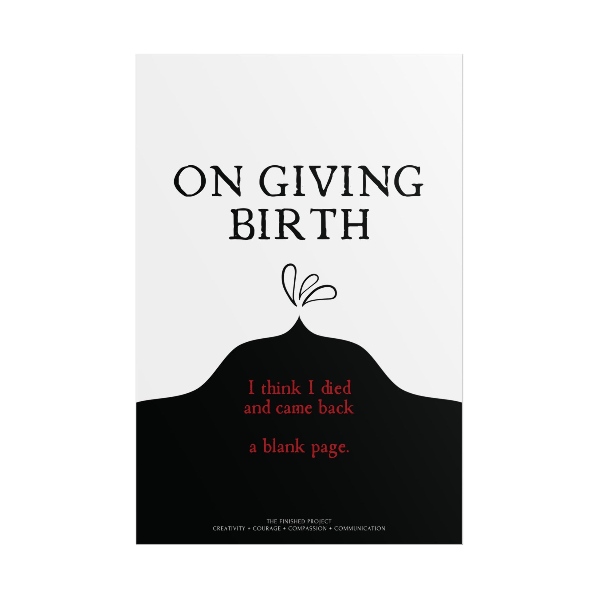 Celebrate mama's journey across the liminal threshold with the "On Giving Birth" poetry + art poster from The Finished Project. This original poetry print is made with museum-grade, heavyweight art paper, and comes in two sizes to fit your living space.