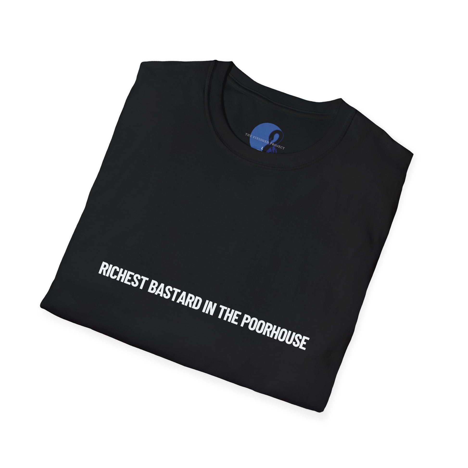 Display your wealth with the "Richest Bastard in the Poorhouse" short sleeve t-shirt from The Finished Project. This unisex t-shirt is made from soft, 100% cotton, with a lightweight, relaxed and comfortable fit.